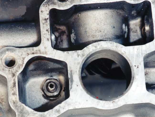 unused block pocket where the oil pump mounts. A small