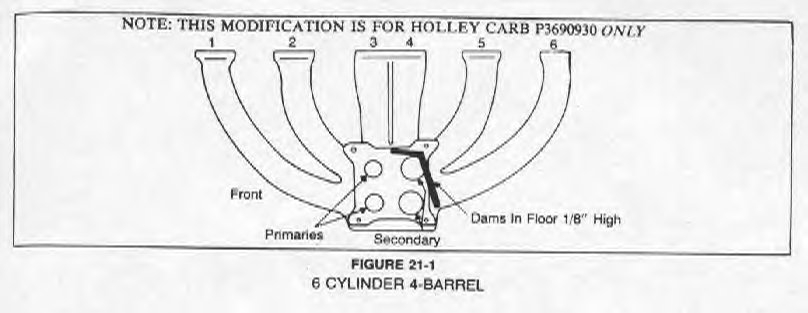 The original Hyper-Pak four barrel manifold is probably the best bet for intake manifolds. Refer to Chapter 21 for jetting information.