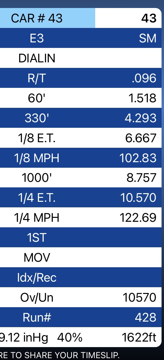 Very impressive times. I will try to get down to MoKan and see your car this weekend if they don't burn down the town like they did last year.