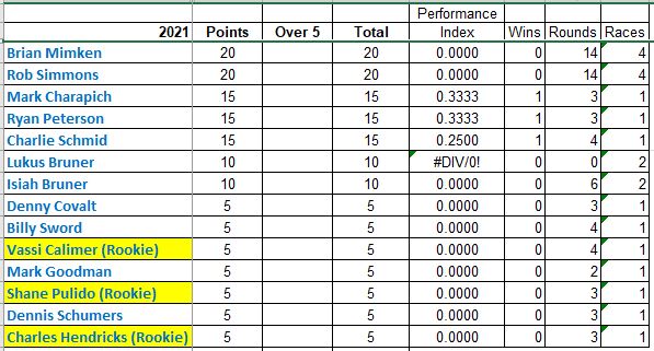 We had a total of 29 racers competing for points with 5 Rookies in 2021.