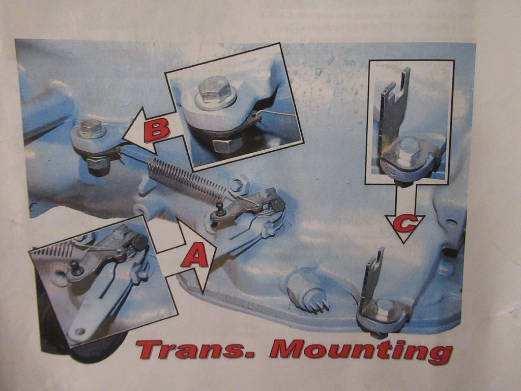 Bracket "C" is at the rear of the trans, bracket "B" is at the front of the trans.