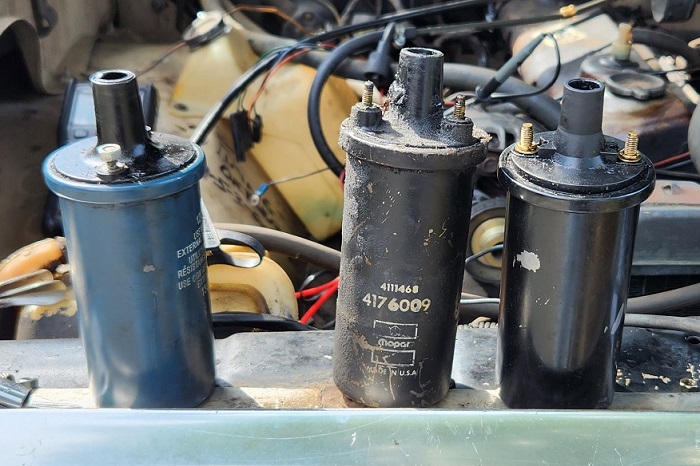Figured out the issue, I should've checked this from the start but it's been a minute since I've worked on one of these trucks. The ballast resistor is bypassed, overvolting the coil. I couldn't find the bypass so I just added another ballast in line. However I also discovered that neither the new coil I had on the truck nor the one that came on the truck would run on 7 volts, at all, they'd start fine on 12 but not run on 7. I took an old Mopar ignition coil off the 318 I have set aside for this truck, part #4176009 / 411468, it runs happily on 7 volts with an inline ballast resistor, so that's my solution for now.