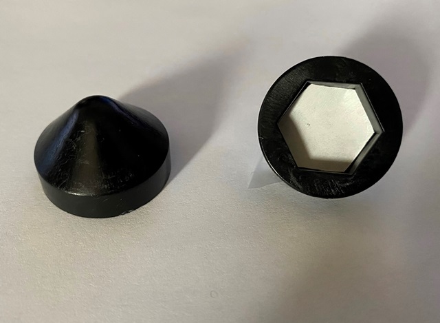 Cone shaped ‘button’ that fits over a 7/16” hex bolt head (5/8” wrench)