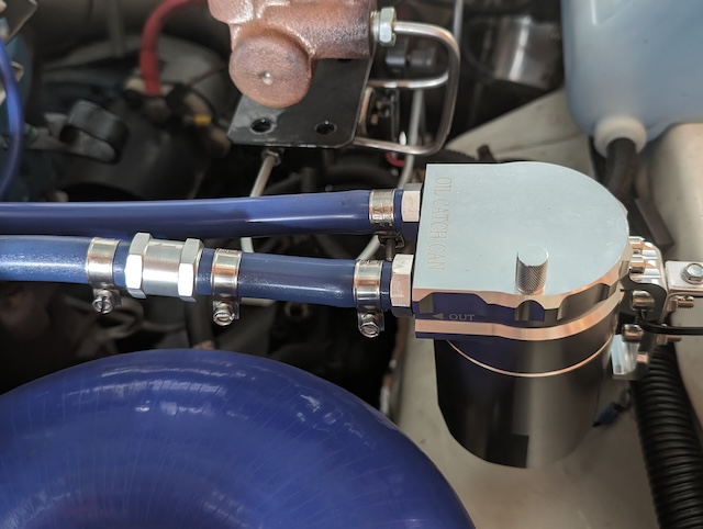I then added a catch can to try and filter some of the PCV gunk and a check valve to keep the boost from sending the catch can contents back towards the PCV valve.