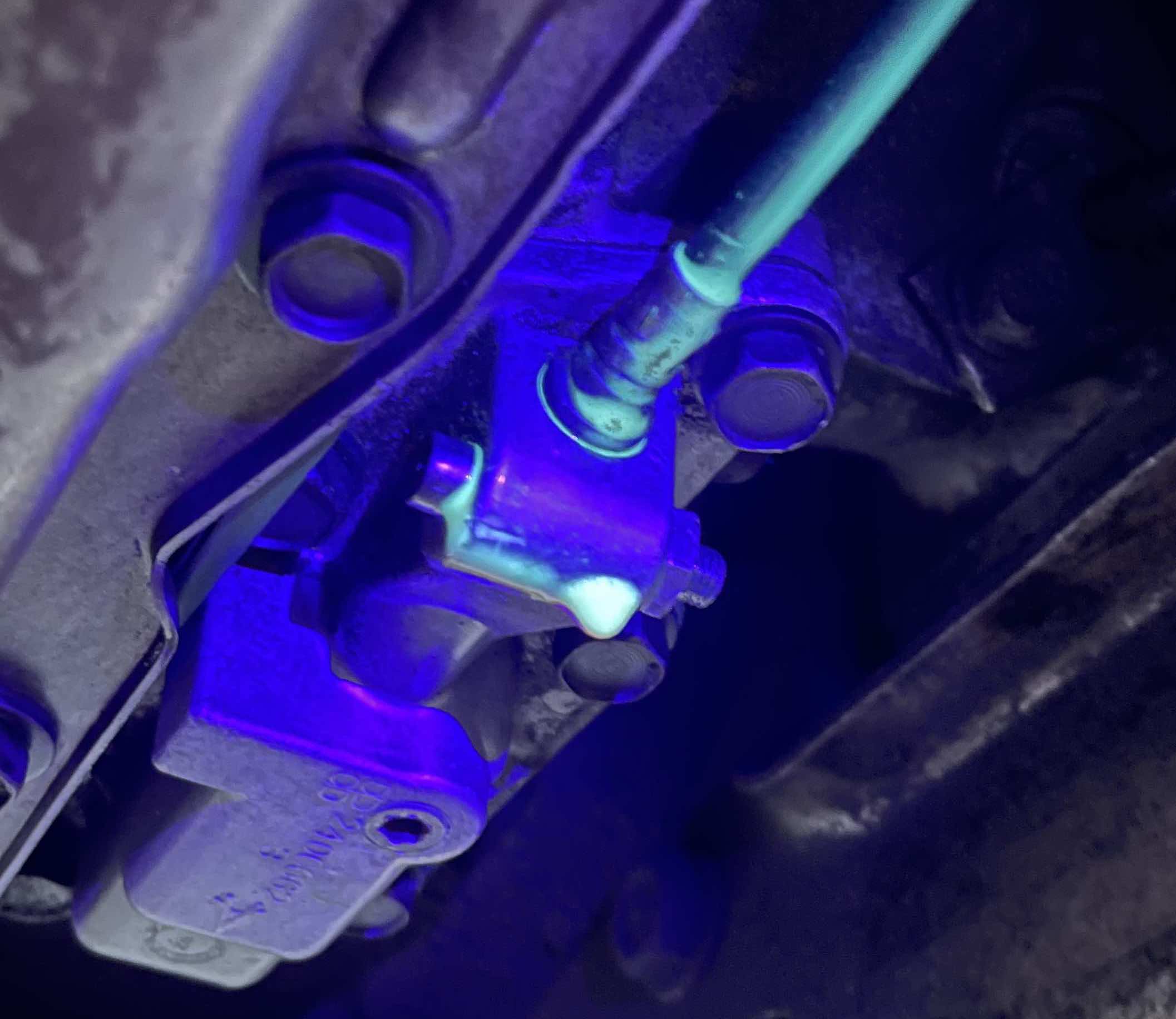 I power cleaned the underside of the trans, refilled it and deployed the dye. Drove the car a bit, and last night, this is what I found. Fortunately, there appear to be no other leaks at all, other than at the park-lock mechanism.