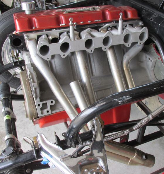 If you modify any headers just be careful to turn them down enough so the carburetor linkage does not hit them when the linkage pushes down. Robbie built mine without a carb on and the rear tube did not clear the carb linkage by much. Lucked out