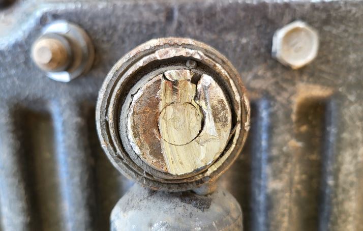 3 hours of using a small cutoff wheel on the nut, bot head and finally the bushing.