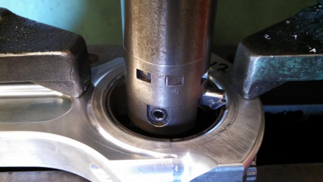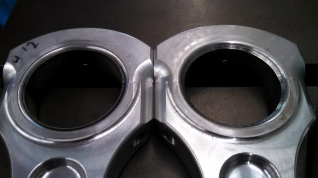 The billet crank, caps and girdle are there in the hopes of withstanding the rigors of repeated high power romps down the dragstrip. In talking with Doc, the slant six forged crank becomes suspect around 500 HP.