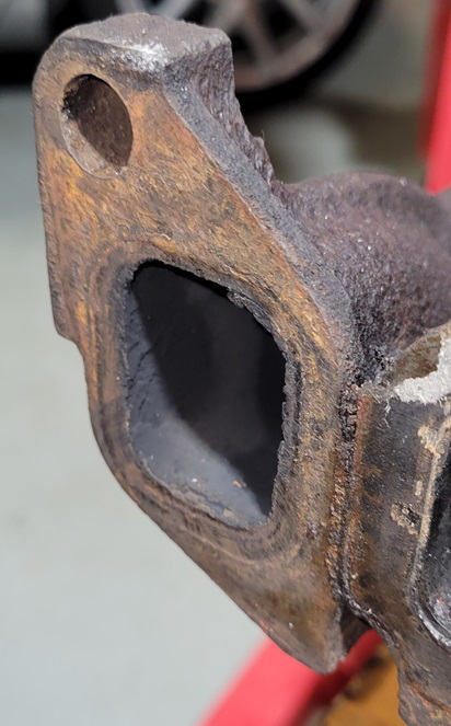 I think I know the answer to this question but I'm going to ask you more experienced folks just to make sure. I think the exhaust manifold will have to be condemned. I went to clean it up and check for warpage and realized the gasket surface of the leading port is rusted away. If I grind that smooth it's probably never going to seal. I've also included a pic of the trailing port for comparison.