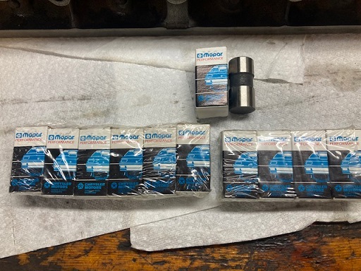 Also posted photos of the NOS Mopar hydraulic lifters, part number P4095897, per the box 1988 vintage, set in to match up with the NOS Mopar cam.