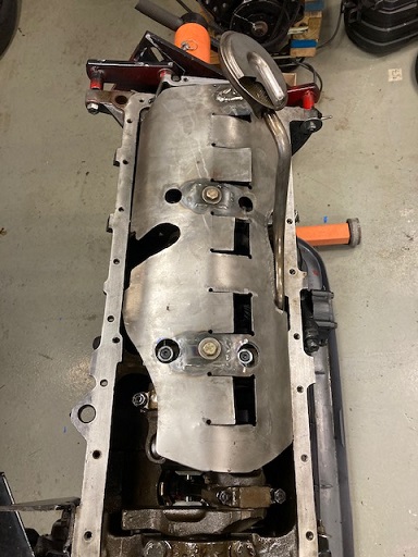 the deep rear sump, would minimize oil sloshing away from the pick up, the rear ward slope of the front section of the pan would move oil to the sump.