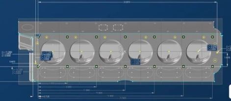 The Jaguar XK6 is a 4-inch bore center spacing, but like the Ford its OHC. The bolt pattern for the XK6 is 4-inch linear, but slightly rectangular in width(wider) - you can see the exposed acorn nuts on an assembled XK6 motor. The head studs are "wet" - pass through coolant inside the head. In theory, you could scoot the holes a little wider to fit the 225 pattern. The holes are near the tops of the valley between the two small valve covers - the spark plugs are directly in the center of the valley.