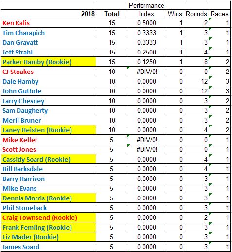 Sorry for the delay. Here are the updated points adding the four racers that got attendance points for Sunday of Clay City, record points for Wes Alumbaugh and the three racers at Sacramento.