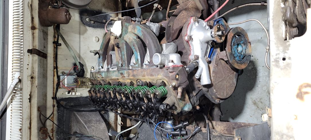 Well, bother. After going to all the trouble to chase the manifold stud threads, seal them with PTFE, bench assemble the manifolds to head and then to shop crane antics to get it that assembly in it runs BUT......I have multiple manifold studs leaking. So now I get to do an R&R on the manifolds and their studs in the truck anyway. Something I was hoping to avoid since I'm hobbit sized so have to either stand on a box or just crawl up into the engine bay. Either way involves lots of bending of my old back. I don't know if the PTFE has failed to seal due to age or if it simply isn't up to the task of those threads.