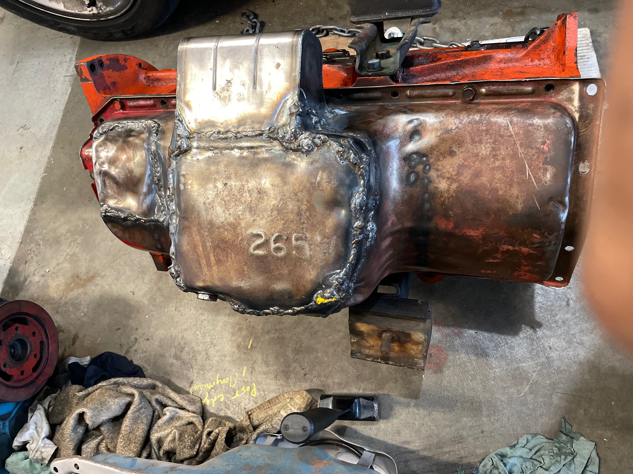 1. No making fun of Lou's welds! He's a Chemistry Perfesser, not a welder! We leak tested the oil pan and called it A OK. :wink: