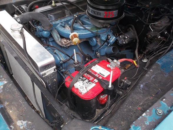 Tomorrow (10/9) the Dart goes in get the new tires installed, and hopefully an alignment. We went out today to take care of a few items before driving it tomorrow. I cut about 1-inch off of both + & - battery cable ends as the wires were a little green and reinstalled them into the terminal ends. Also cut down the threaded portion of the battery hold-down assembly, didn't want to scrape an arm on either of them. Capped them off with a couple of vacuum caps. The grille is out so we used a couple of clamps to hold the turn signals in place. We aired up the tires to allow for easier steering as the fronts were down to about 12 psi. After all of that was completed, I had Logan get in the driver's seat, pump the gas 3 times, and start it. We haven't started it in about a week and it fired right up and ran on high idle for a little while. Logan got a huge smile on his face when it started up! I need to adjust the choke a little as it was pretty rich on high idle.