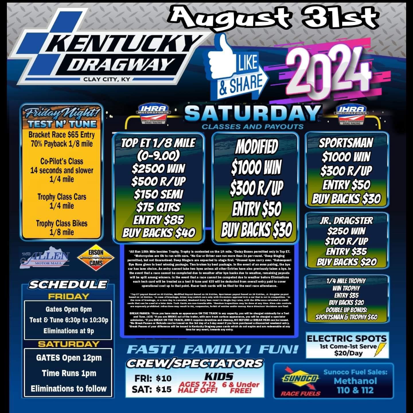 Saturday, August 31st is 1/8 Mile Modified for me as well as the 1/8 Mile Slant 6 Race Correct?