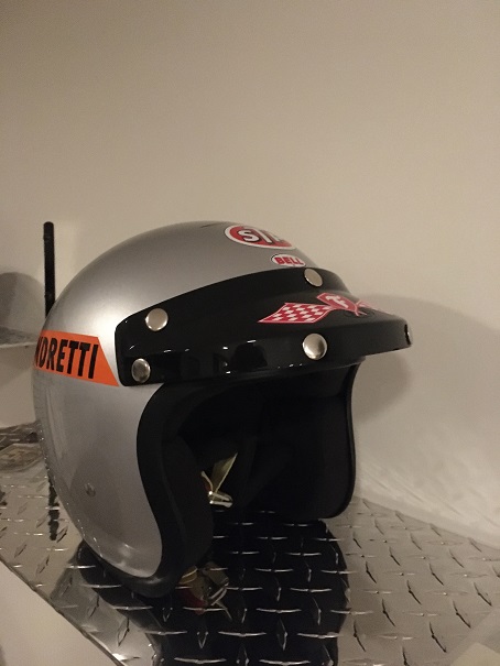 Mario Andretti,, won Indy in 1969,, last open face helmet to enter Victory Circle as a 500 winner.