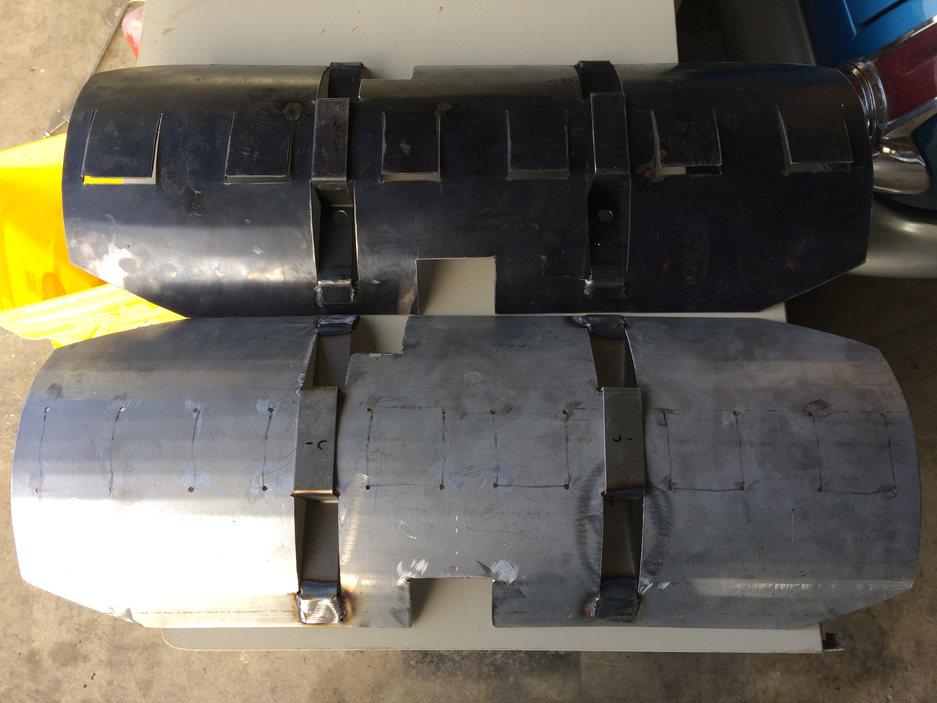Mikes up top, mine on the bottom. Slots not cut out yet, but you get the idea.