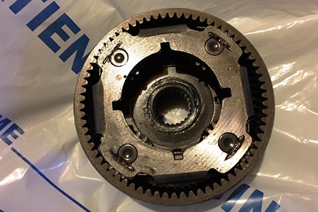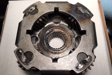 Minor setback with the transmission. One of the gears in the rear planetary apparently has been binding. You can tell which one in the picture, as that corner has turned blue from the heat. I did manage to get it freed up, but it now has a lot of play in it. It would probably work, but it is a lot noisier than the other three. Just to be safe, I ordered a replacement planetary set. I have enough other things to work on until the new gears arrive.