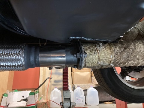 The long tube Hooker header flanges get real close to bottom edge of the deep 904 oil pan. I am working on re shaping the pan in one section to allow for proper clearance.