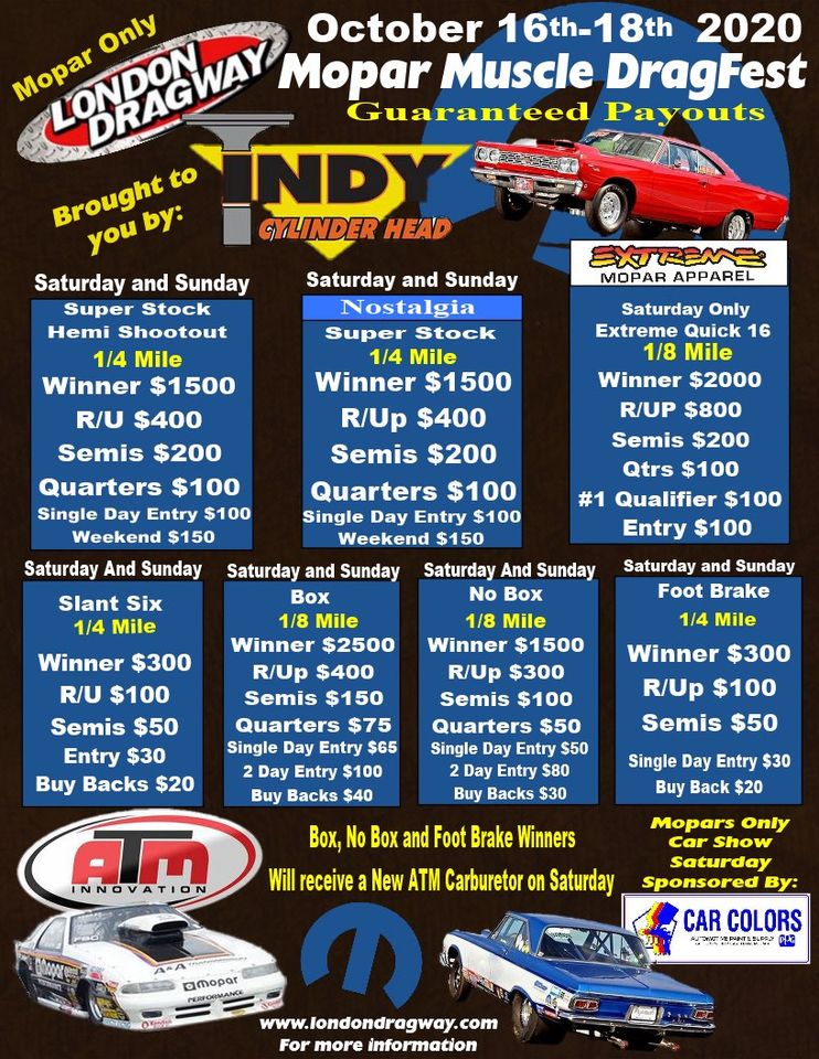 I talked to Bobby and told him we would be interested in having a points race at the Mopar Muscle Dragfest next year if it works with our schedule. He and I will be in touch. I will have more information for the banquet discussions.