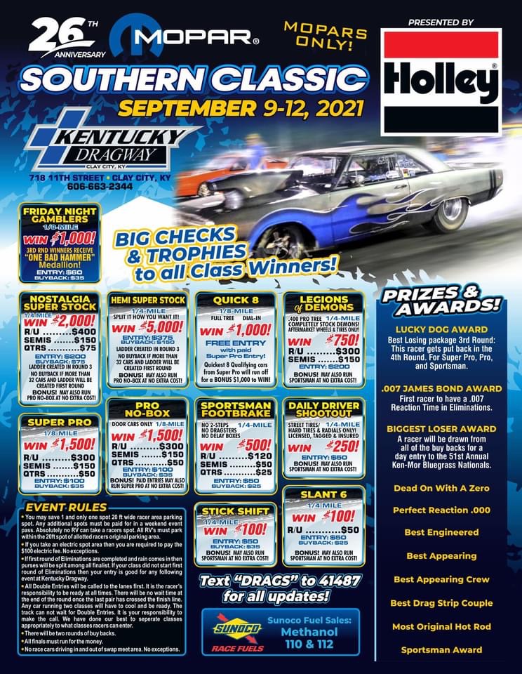 We will have two days of racing. 1/4 mile Saturday and 1/8 mile Sunday