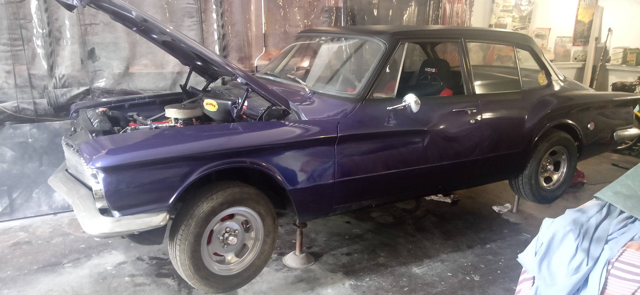 Thanks fellas, yeah shes turned out much better than I first envisaged,..was gonna leave patina but after rust dent repairs there was more and more primer patches that it made more sense to repaint the whole car and I had a gallon of metallic purple acrylic doing nothing so I added more sparkle to it plus ome red gold pearl in the clearcoat, did a fake vinyl roof in truck bed liner.