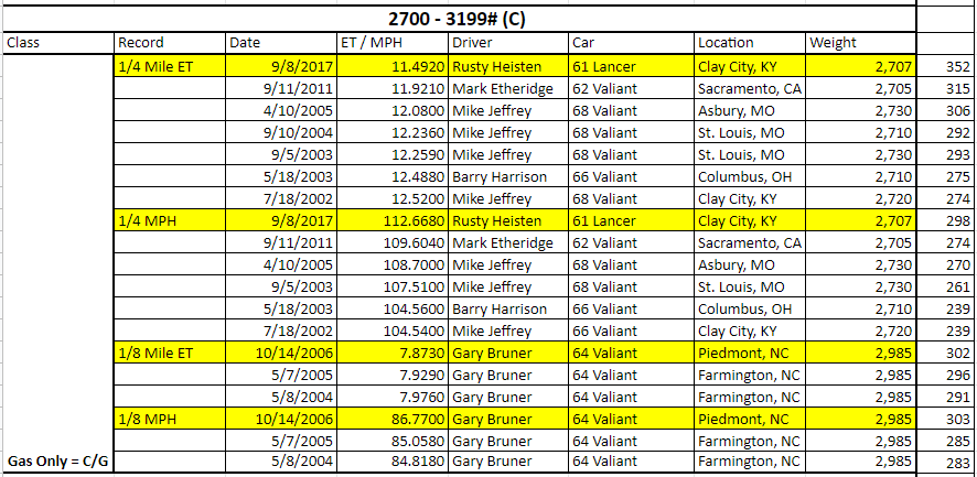 I can't believe Gary Bruner is not in the HOF. He has been racing slant 6's for almost 50 years. He held records in IHRA.