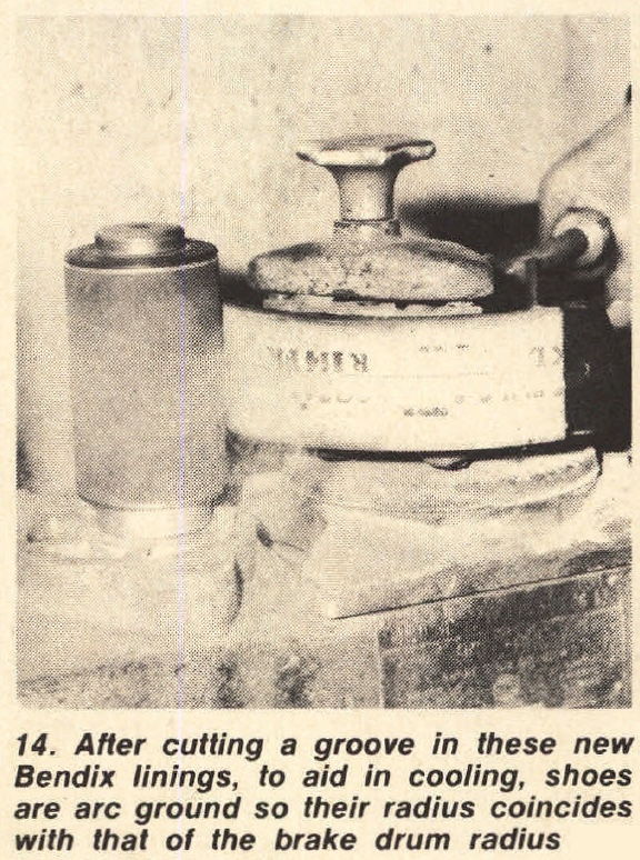 How can you bed-in the shoes? Well…keep stopping the car, without leaning too hard on the brakes until the shoes match the drums (if you wind up having to stand on the brakes hard enough to glaze the shoes, you'll have to wet-sand them as described above). Here's a pic from a good mid-'70s auto repair manual, of grinding the shoes to match the drum. Lookit that cancer-causing brake dust fly! Aw, that's awright, the machine operator was probably filtering his air through a cigarette. The past is a foreign country, making a '63 Valiant an unusual foreign car in 2023. One must adapt and make do as best one can.