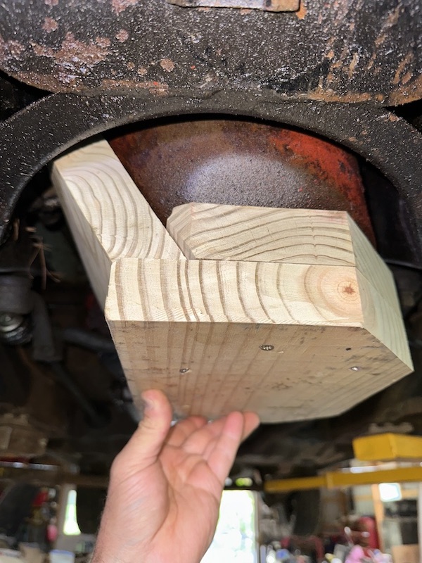 Then I held up a 2x12 cutoff, and saw that I'd need to trim off the corners to get it past the K-frame.