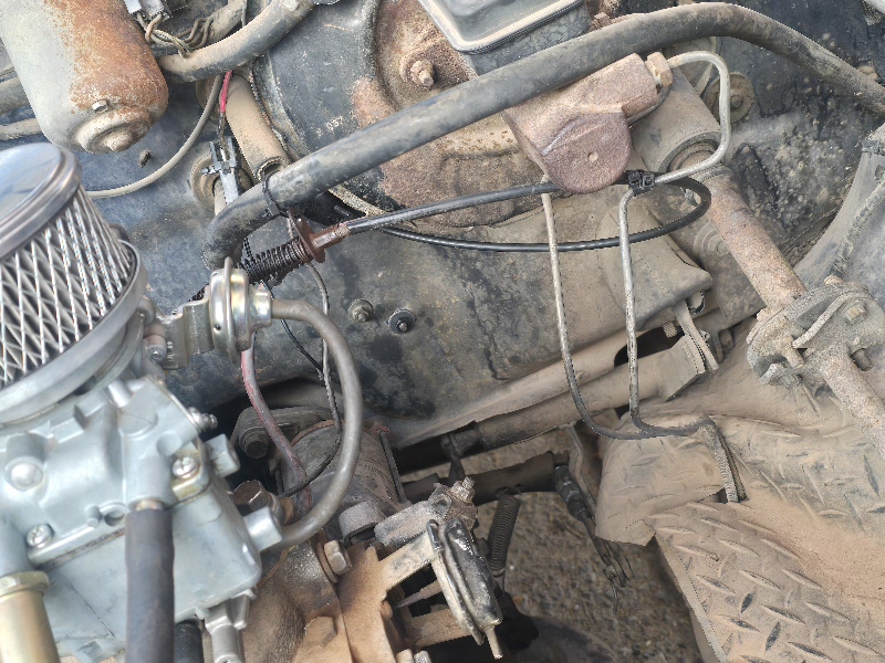 When i bought this truck is has all sorts of different parts from ford chevy dodge.So the carb is a ford carburetor that I bought new since I got a reman dodge and it cropped out quick. So the accelerator cable is a ford that I kinda had to make shift with the pedal. The trans from what I was told is a ford since it take a ford clutch, it is a 4 speed though I'll upload pics. The ignition system I did the swap that has a ford coil an a chevy module. When I got this truck it has all sorts of different parts.