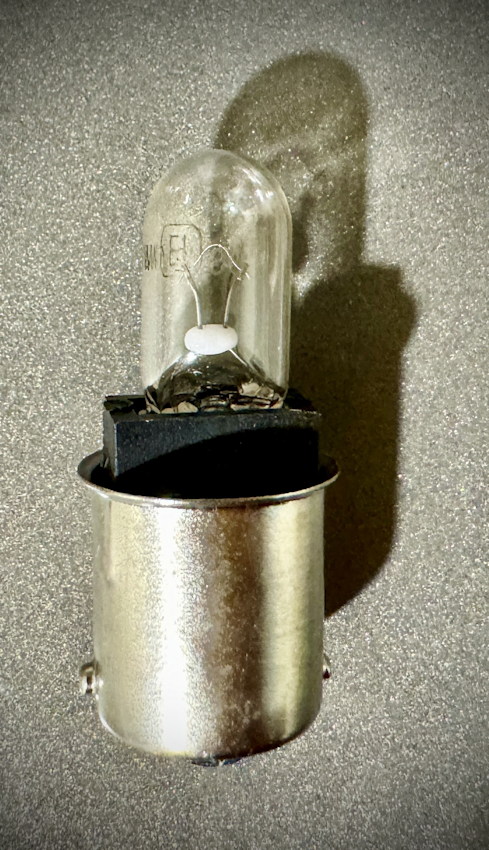 As you can see, it's an adapter to use a type W5W or № 168 bulb, the all-glass peanut type. These bulbs put out the same amount of light/draw the same amount of current as the discontinued 1095, the adapter holds the glass bulb firmly, and — most importantly — it puts the filament exactly where the 1095 filament would be, relative to the reflector and lens, so the lamp works correctly: the whole thing lights up evenly and at the correct level (if you get this distance wrong, such as by using a № 67 or 97 bulb, you get a little central dot of light but the reflector doesn't "see" the filament properly, so it doesn't light up evenly). The adapter is sturdily constructed, and has a nickel-plated base so it won't corrode and seize into the socket.