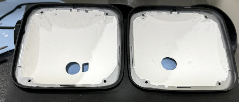 Here are the reflectors after I applied Behr Ultra Pure White, which has a reflectivity value of 94, even higher than the Sherwin-Williams stuff. I used a foam brush to apply it. It goes on thick, and took 2 coats for full visual coverage: