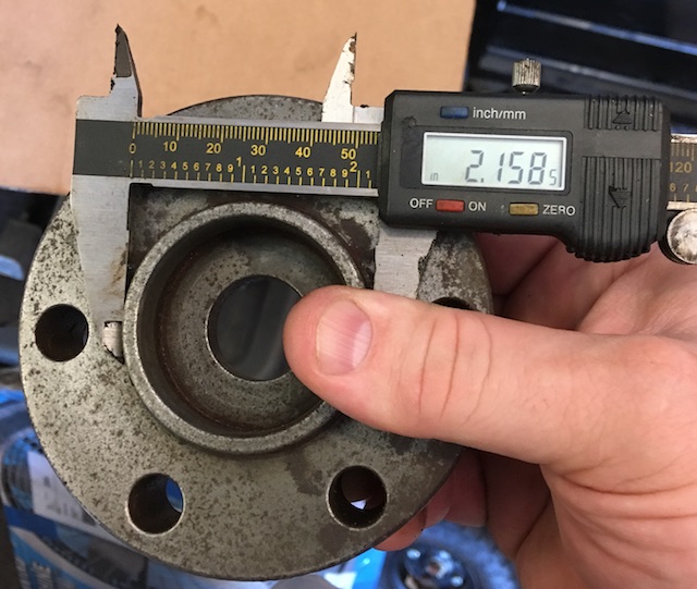 Sorry, I cannot find a reliable number for the large crank register OD. It is close to 2.16", but I would not trust that without doing a good measurement with known good tools (caliper, micrometer). I guess you don't have a spare crank to carry to your machine shop? Will contemplate and/or ask someone trustworthy...