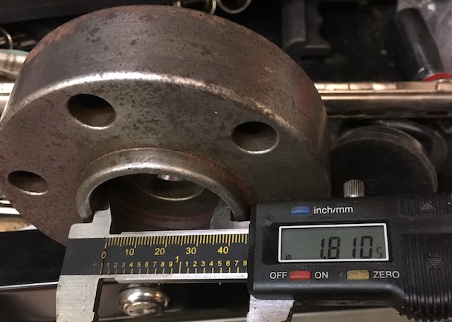 So my question, then, is does the pocket on the flat side of the crank spacer fit over the flange on the slant crank? It must, because the flex plate must bolt directly to the torque converter and the raised lip on the crank spacer fits the hole in the middle of the flex plate. So I think I have the crank spacer orientated correctly in the picture above. If that is true, no spacer ring is needed, just a quick trip to a machine shop with a lathe to open up the pocket on the flat side of the crank spacer to 2.165 inches.